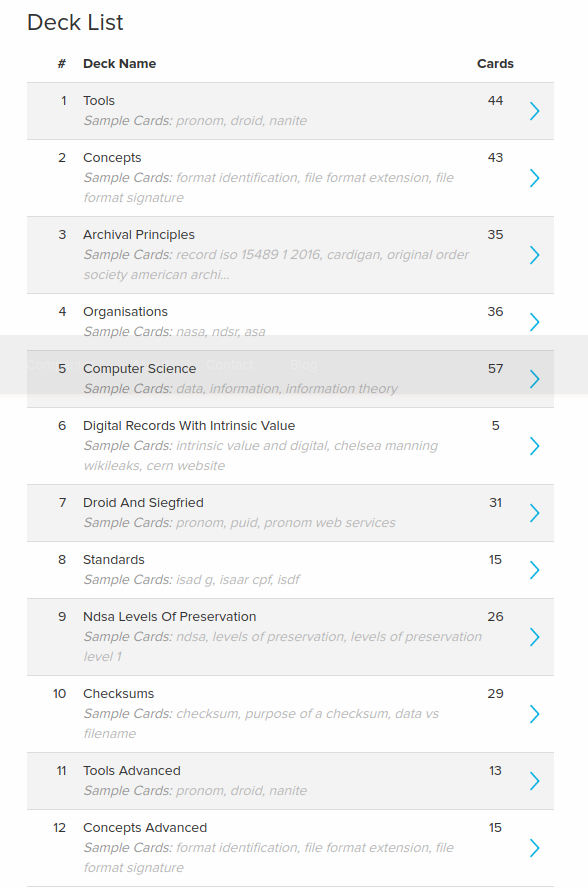 At the time of writing there are 12 decks of cards across a range of topics: