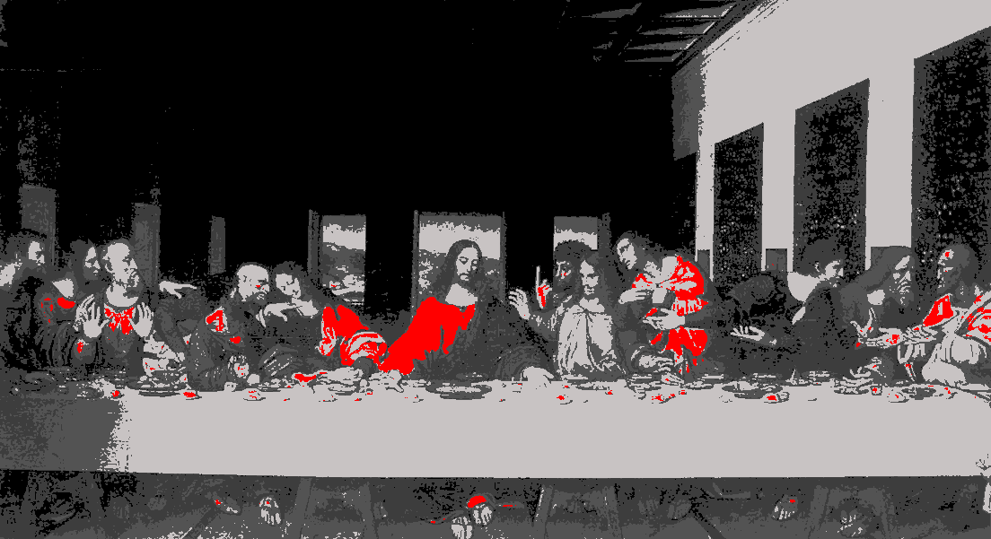 For the painter goblin I was particularly interested in false and pseudo color techniques and reducing the number of colors in an image to create greater contrast between detail hidden in continuous tone. This is a technique I’ve used in the past to identify and demonstrate compression artefacts in lossy compressed images more clearly. I also have to thank a friend, Matt who had asked me to do some work previously in this area, the code from which became quite transferable.
